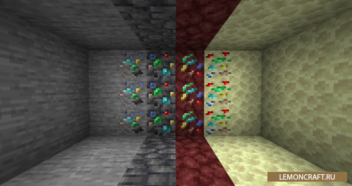 Мод на новый вид руды Rand'Ore будет генерировать в подземельях новую руду, добыв которую вы сможете получить одну и ванильных руд, а какую именно, зависит от вашего везения. Данный вид руды присутствует, как в обычном мире, так и в Незере и Крае.
